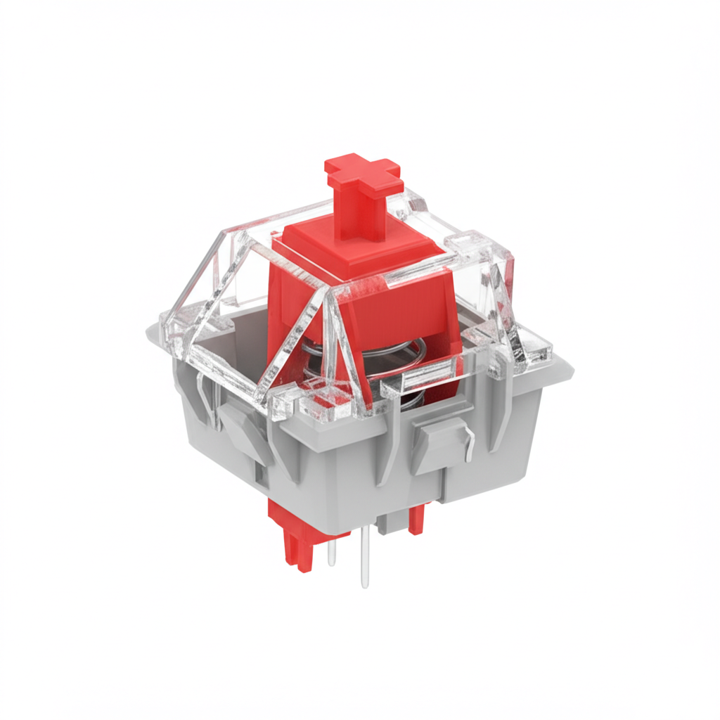 红轴是最受欢迎的线性轴之一,以其平滑的按键体验和较轻的触发力著称。没有触感反馈点,从顶部到底部的阻力保持一致。